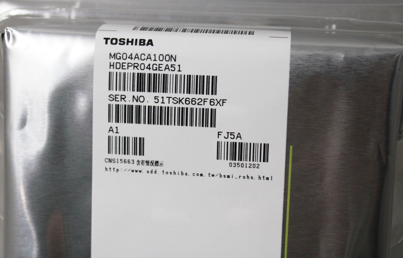 Description: Toshiba MG04ACA100N 1TB 7.2k 3.5" LFF SATA 6G HDD hdepr04gea51 Never Deployed